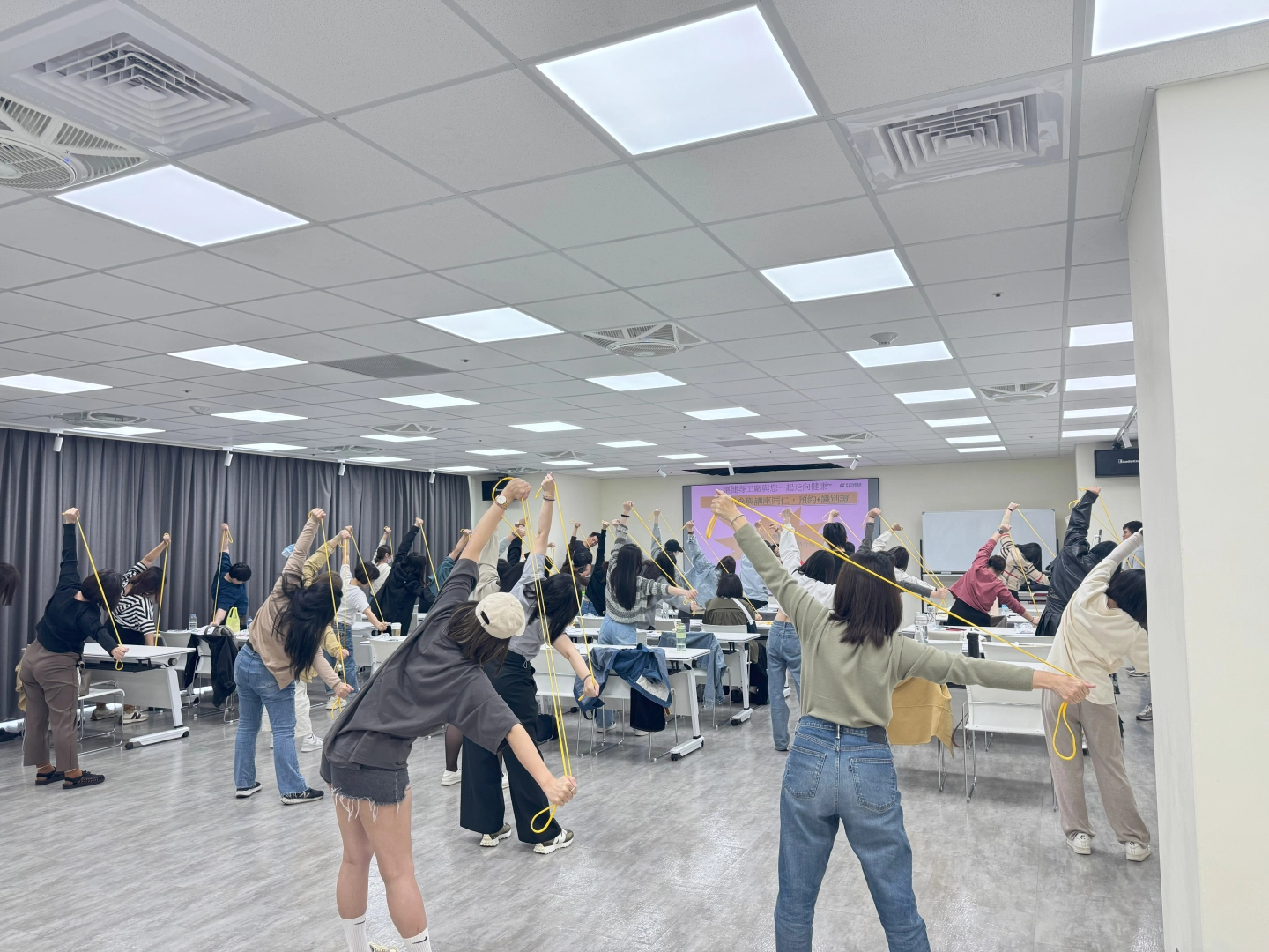 本場講座不只是「坐著聽」!教練 Ting 現場帶領大家進行辦公室小運動,氣氛熱絡、笑聲不斷,讓同仁們在歡樂中收穫滿滿健康知識!